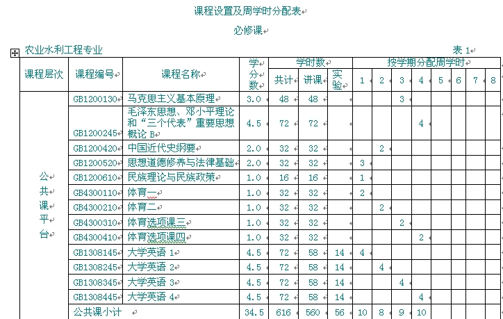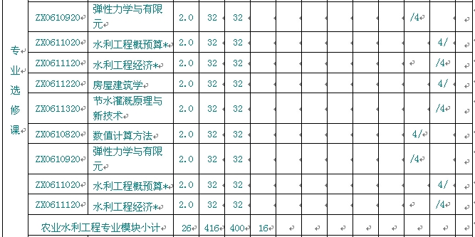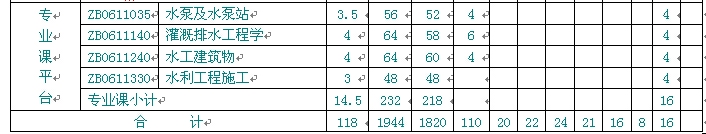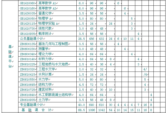 主要课程:工程测量、理论力学、材料力学、结构力学、水力学、土力学、工程水文、水利计算、钢筋混凝土结构、水利工程施工、灌溉排水工程学、水工建筑物、水泵及水泵站、。