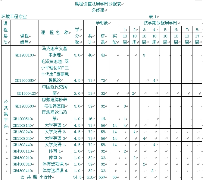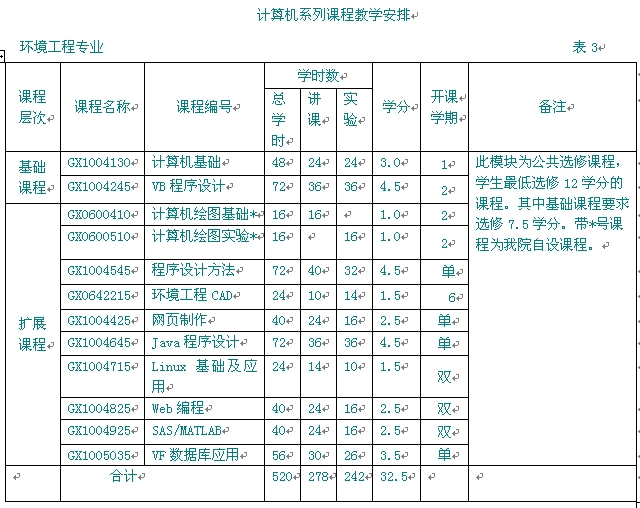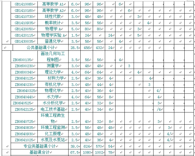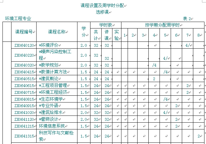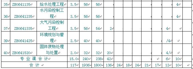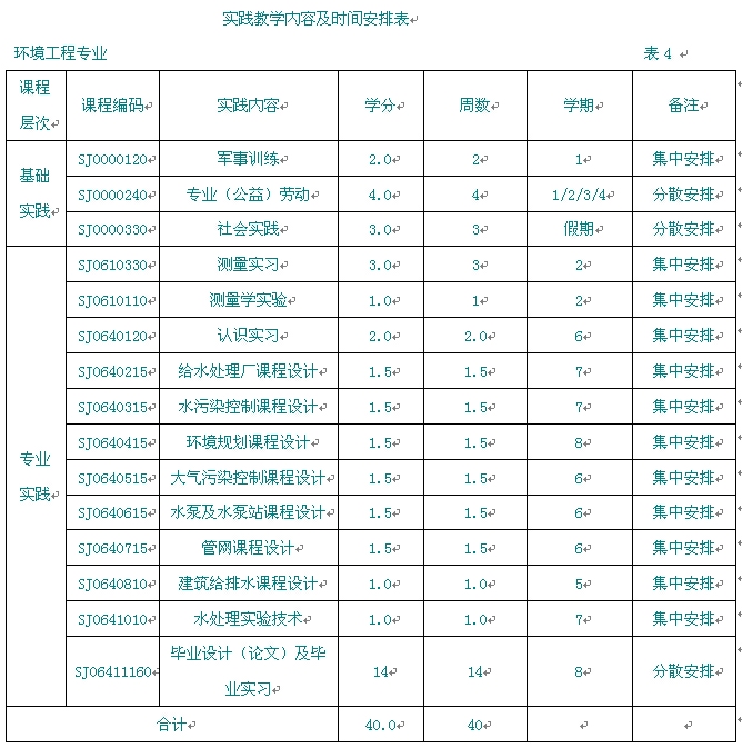 主要课程:普通化学、有机化学、物理化学、水分析化学、水力学、工程力学、环境微生物学、环境监测、化工原理、环境规划与管理、环境评价、水污染控制工程、大气污染控制工程、噪声污染控制工程、固体废物处理与处置、环境工程CAD等。