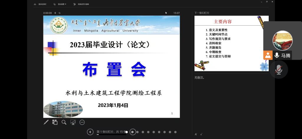 2023年1月4日下午,公司测绘工程专业2023届本科生毕业论文(设计)布置会通过腾讯会议在线如期举行。测绘工程系全体教师,19级测绘工程专业全体同学参加了此次会议。