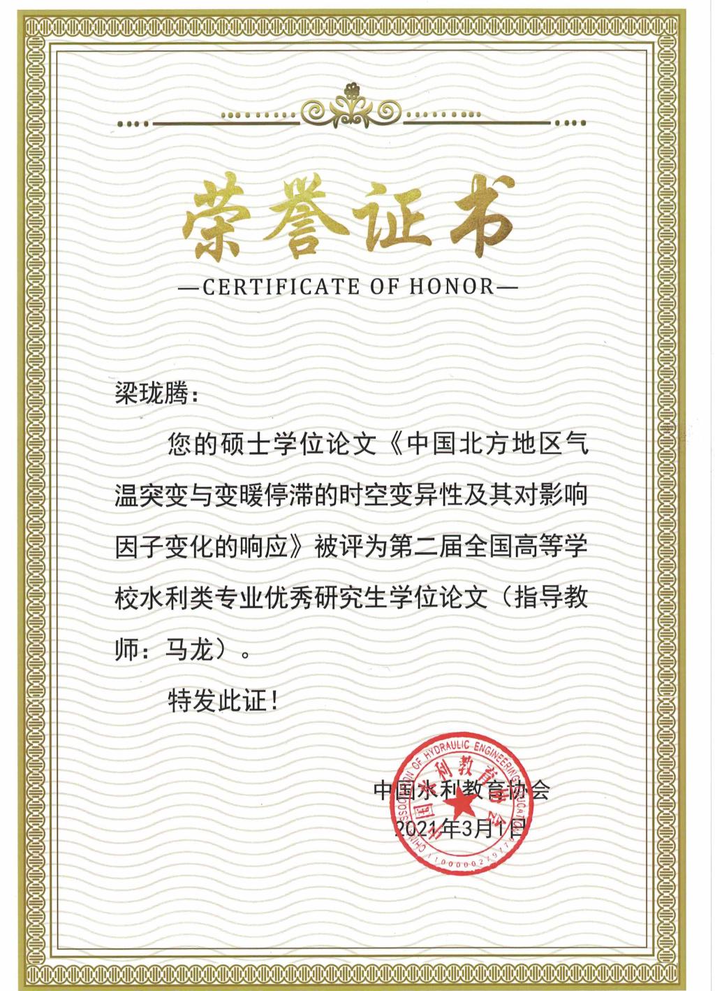第二届全国高等公司水利类专业优秀研究生学位论文-梁珑腾