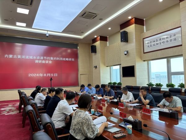 座谈会上,康绍忠院士介绍了“内蒙古黄河流域水资源节约集约利用战略研究”项目的研究背景、主要研究内容与预期成果,询问了当地在水资源节约集约利用方面的做法成效、存在的困难以及政策需求。内蒙古自治区水利厅水资源处贺文华处长和农牧处于婵处长详细介绍了内蒙古黄河流域的水资源和社会经济发展状况,汇报了当前水资源节约集约利用方面的政策方案、制度建设及取得的成效。彭雅丽副厅长提出了未来水资源刚性约束条件下深入推动各行业节水精细化管理的工作构思。会谈双方在水资源利用效率评价指标、水权转让方案、水价改革、非常规水利用等方面开展了深入交流。康绍忠院士最后提出咨询项目将在内蒙古黄河流域的后备耕地资源开发、耗用水管理、节水奖补政策和西线调水工程方面进行深入研究,形成决策建议,为内蒙古水资源节约集约利用提供方向性指引。