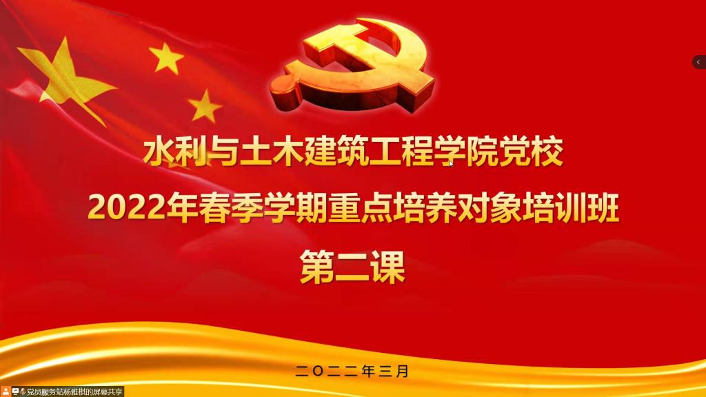 为提升入党重点培养对象的党性修养,增强思想认知,2022年3月10日晚,公司于线上组织开展2022年春季学期重点培养对象培训班第二课。本次培训由公司分团委副书记郭祎天主持,全体重培对象参与此次培训。