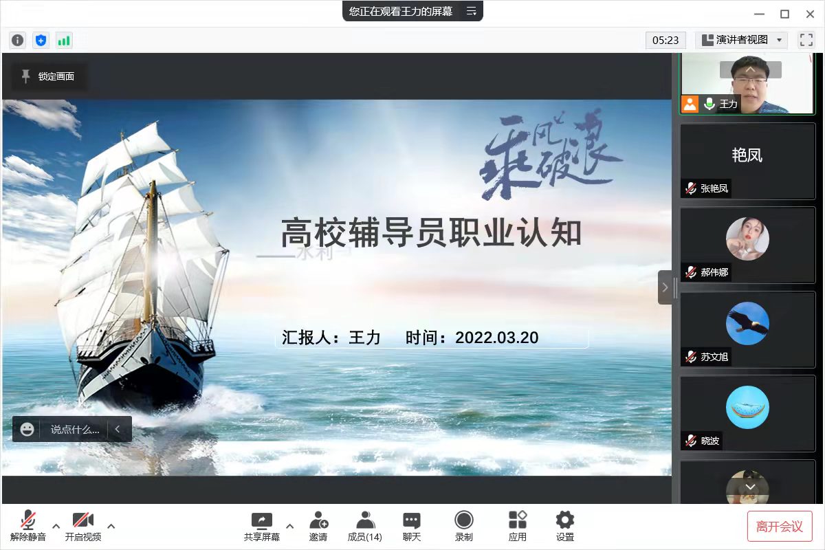员工工作办公室副主任三叶、团委副书记郭祎天、专职辅导员高栓伟、张艳凤结合本职工作,分享了自身工作的经验、体会和心得。