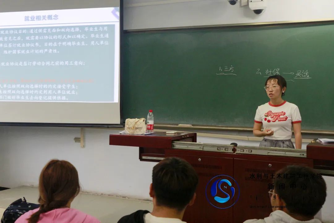 为帮助2024届毕业生了解就业形势,解答毕业生现阶段遇到的困惑,公司特分专业举办主题为“我的大四一年”的毕业生就业指导讲座,2023年9月8日下午,举办水文与水资源工程、农业水利工程两场,毕业班班主任出席本次讲座,学办专职辅导员张艳凤主讲。
