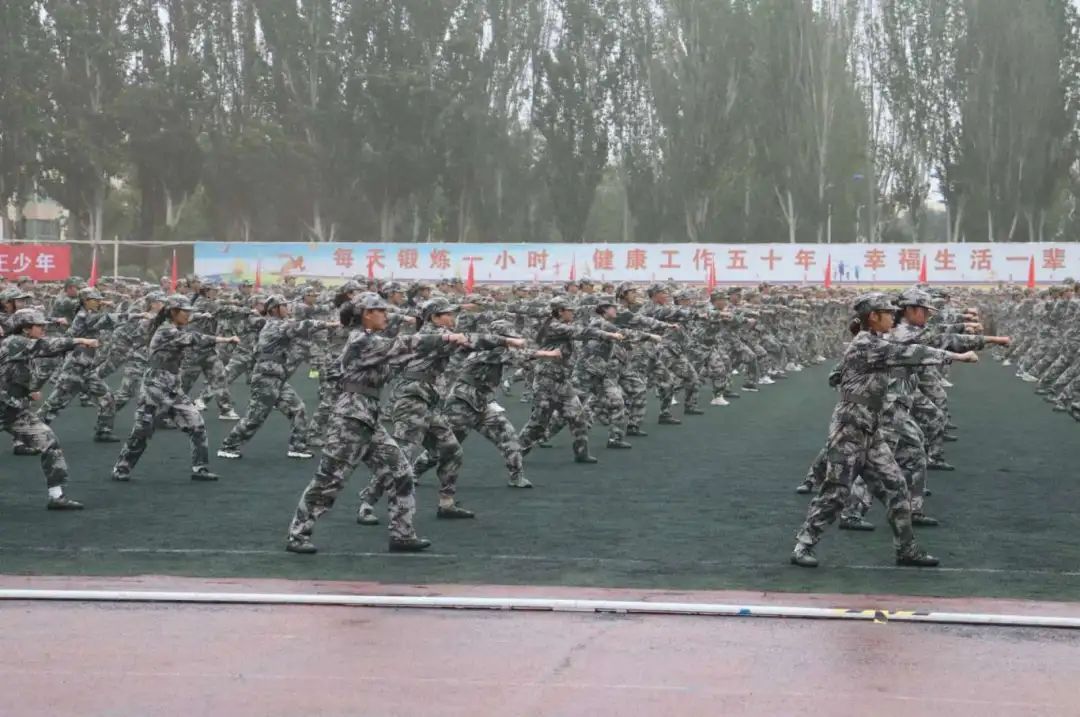军体拳表演刚劲有力,一招一式都彰显出军人的英勇胆色。迷彩服下的青春洋溢着斗志,意气风发的少年们身姿挺拔,口号铿锵。他们坚毅的神情和整齐划一的动作,充分展现了水建学子青春洋溢、朝气蓬勃、无畏前行的精神面貌。