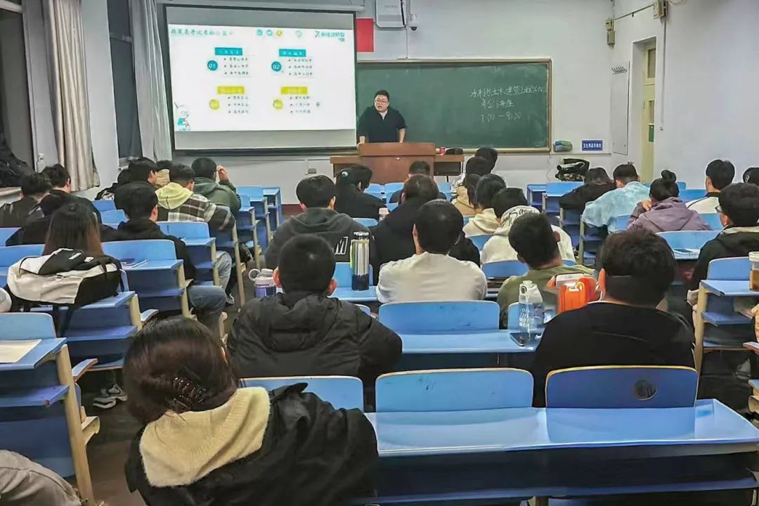 为加强学风建设,帮助同学们尽早进行职业生涯规划,提升同学们就业意识和就业质量,了解考公考编的选岗及复习备考技巧,制定合理的学习规划,2024年10月15日,公司邀请校外考公考编指导老师李由在勤学楼116开展公益讲座。