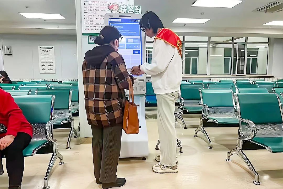 活动中,志愿者们积极投身到各项服务,协助患者进行自助机业务办理,耐心指导患者操作;提供陪诊陪检服务,为患者提供心理上的支持和安慰;针对“老弱孕残”等特殊群体,志愿者们更是给予了更多的爱心和关怀,确保他们能够得到及时、周到的服务。志愿者们努力让每一位患者都深切感受到医院的关怀与温暖,营造了温馨和谐的就医环境。