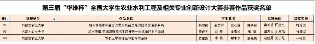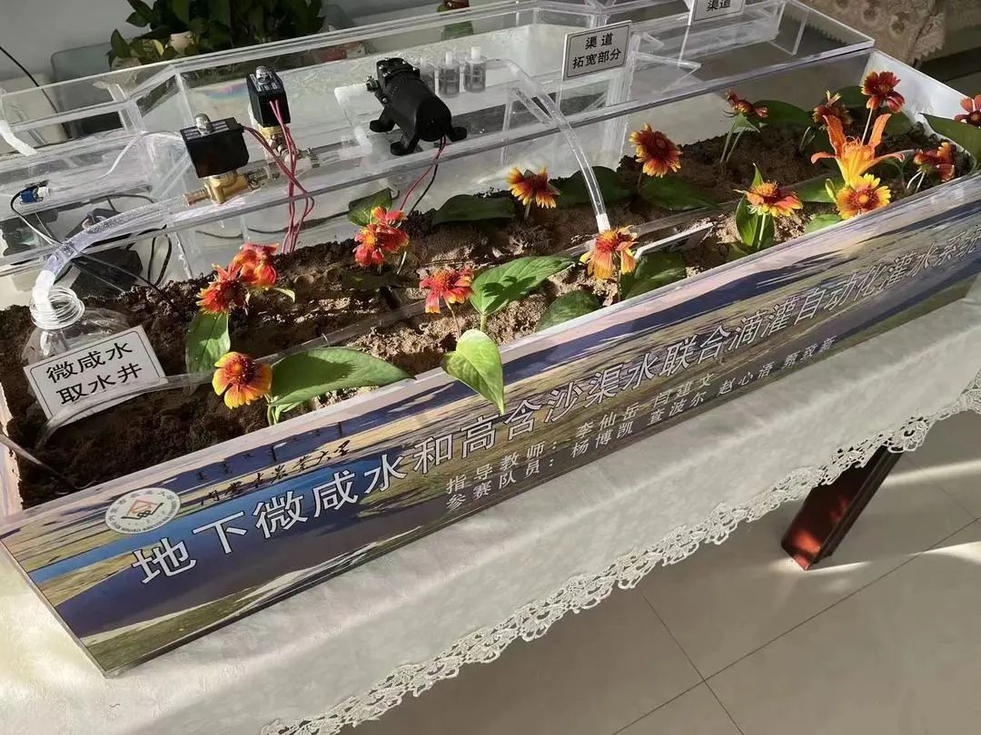获得特等奖的作品为《地下微咸水和高含沙渠水联合滴灌的自动化灌水系统》,由公司李仙岳老师、闫建文老师指导,杨博凯、查波尔、赵心雨、甄志新四位同学完成。作品《绿水清田-盐碱滩微咸水生态种养一体化循环利用系统》,由公司屈忠义老师、刘海昆老师指导,李俊杰、刘琦、潘雪松、彭博四位同学完成。