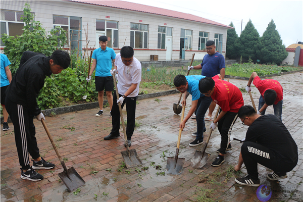 一周以来,清水河阴雨连绵。公司赴清水河美丽乡村社会实践服务团的实践队员们不畏风雨开展了一系列活动。休息之余,大家也没闲着,看到驻地老牛湾镇单台子小公司园里砖缝间杂草从生,破坏了往日整洁平整的环境,拿起铁锹、锄头、镐头、腻铲等一切可以利用的工具,开展了一场除草大会战。