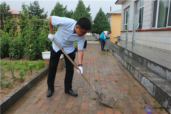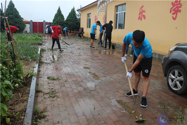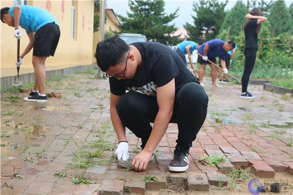 由于单台子小学师生人数较少,平时疏于打理,校园内前院后院到处都是杂草。实践队员们分配好清扫工具后利用下雨间隙和开展理论学习之余开展除草劳动。王老师与同学们一起,挥锹铲除杂草,为一干实践队员做好表率。众人拾柴火焰高,在同学们的努力下,用近3个半天时间将整个小学前后院4片空地近2000平米的杂草全部清理干净。对此,单台子小学杨董事长看在眼里,记在心头,对实践队员们不辞辛苦乐于奉献对服务精神赞不绝口。