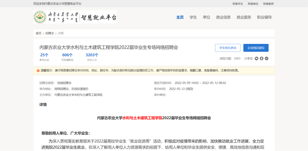 为更好地服务公司毕业生就业,公司于2022年5月12日召开“2022届毕业生专场网络招聘会”。