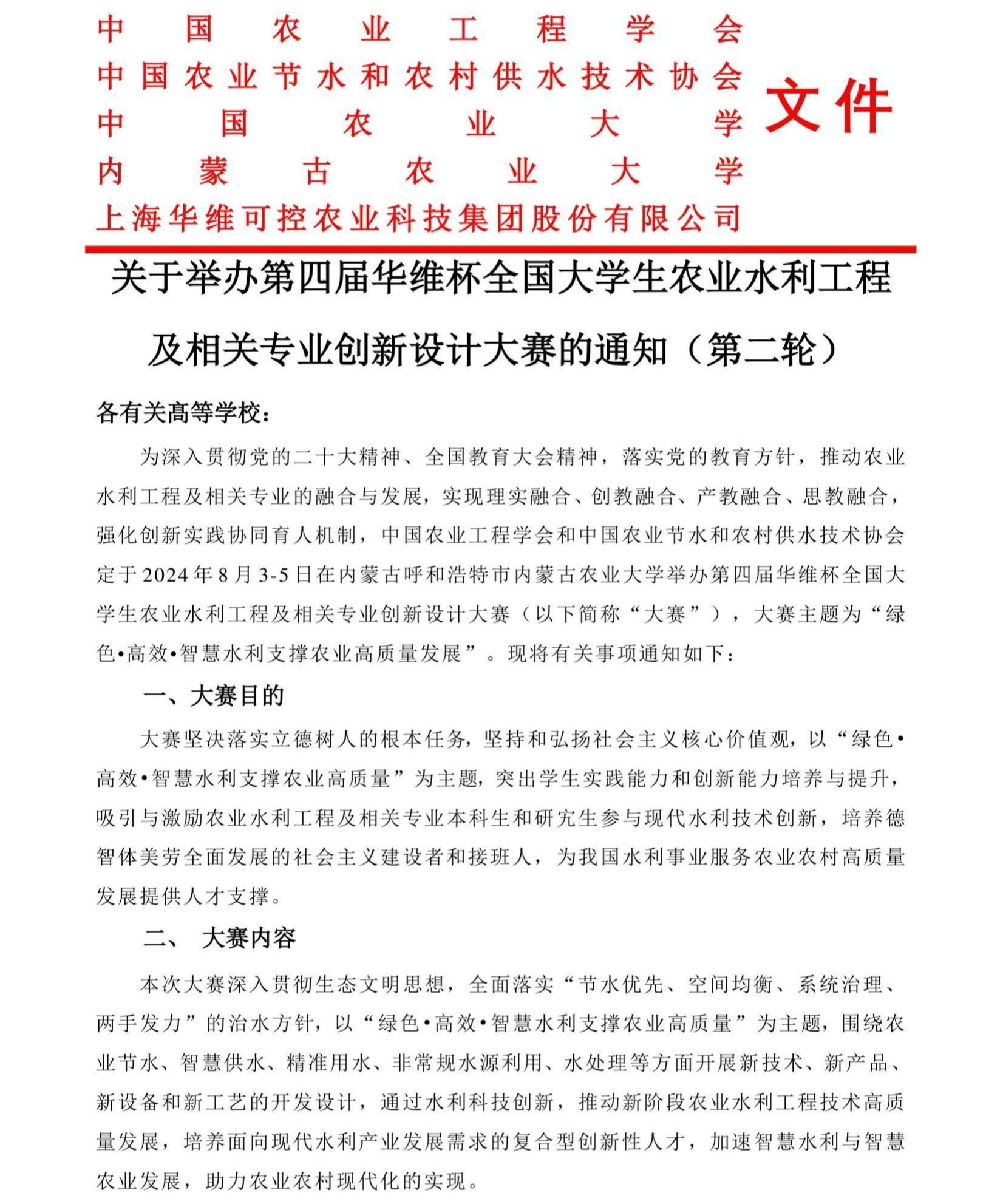 关于举办第四届华维杯全国老员工农业水利工程 及相关专业创新设计大赛的通知(第二轮)