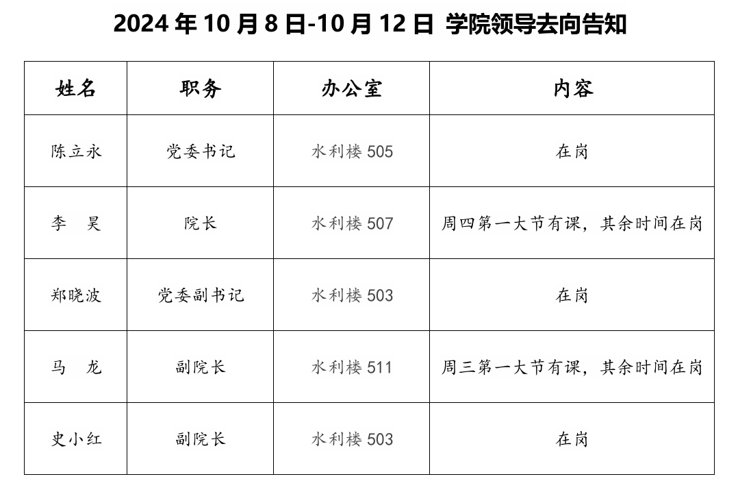2024年10月8日-10月12日 公司领导去向告知