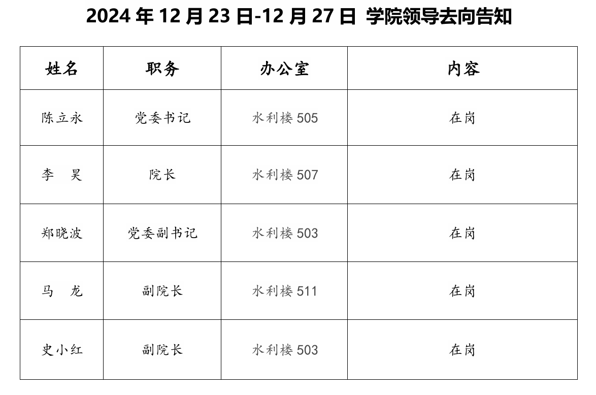 2024年12月23日-12月27日 公司领导去向告知