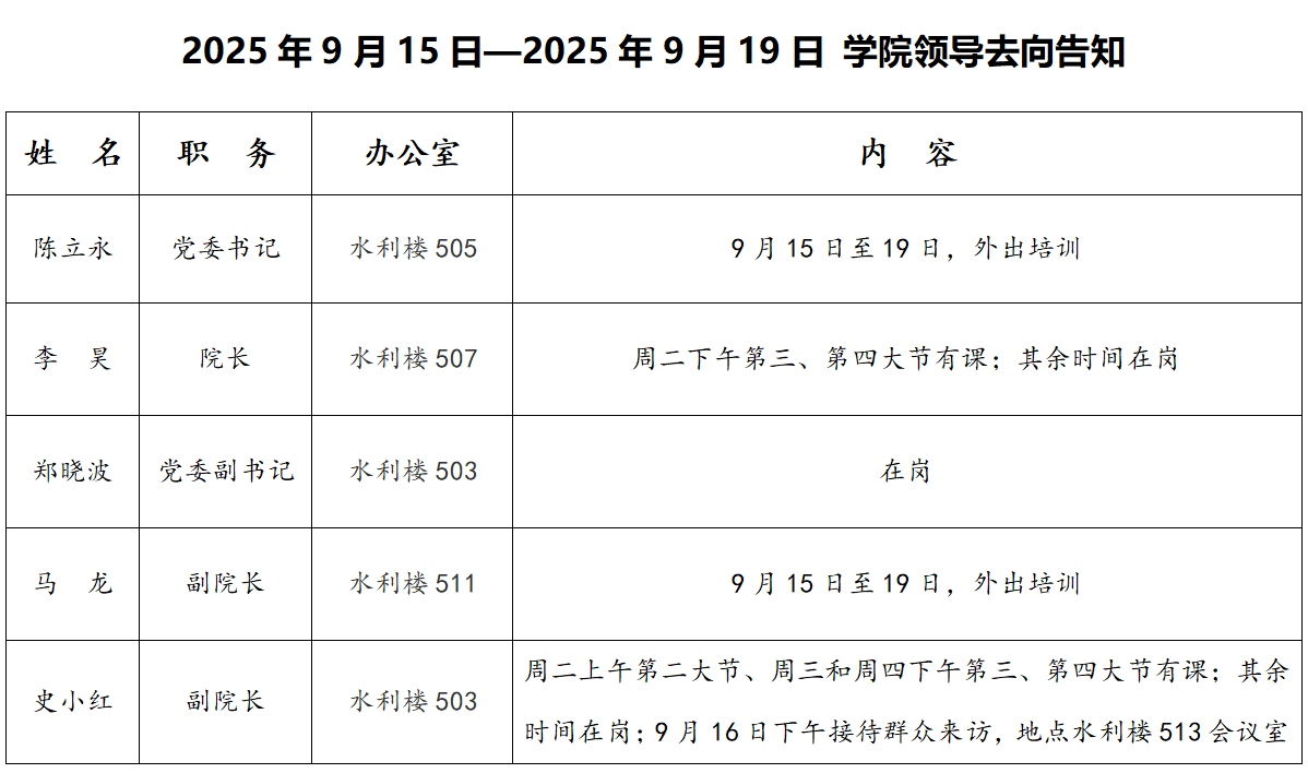 2025年9月15日—2025年9月19日 公司领导去向告知