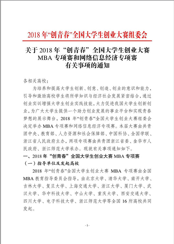 关于2018年“创青春”全国老员工创业大赛MBA专项赛和网络信息经济专项赛有关事项的通知