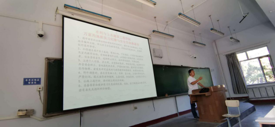 25日下午,太阳成集团tyc33455地质工程教研室李文宝、黄磊、许磊、刘志强和李钢柱等5名教师为返校员工代表召开实习动员会。会上指出,实习将分组进行,依次开展野外观测和室内图件编制等两大实习内容。鉴于目前防控疫情的需要,本次实习采取“公司-实习点-公司”的闭环管理措施,尽可能减少员工与无关人员的接触几率。