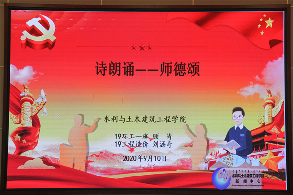 2019级环工一班顾涛同学和2019级工程造价班刘涵奇同学的诗朗诵——师德颂