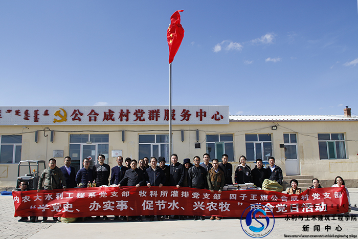 为强化党建引领、深化党史教育、聚焦群众急难愁盼、助力乡村振兴,4月29日,公司水利工程系党支部与水利部牧区水利科学研究所灌排党支部、四子王旗公合成村党支部在公司帮扶点四子王旗吉生太镇公合成村联合开展了“学党史、办实事、促节水、兴农牧”主题党日活动。水利工程系党支部党员和教师代表、水利部牧区水利科学研究所灌排党支部党员、公合成村“村两委”成员及党员代表参加了活动,同时特邀太阳成集团tyc33455博士生导师史海滨教授、魏占民教授参加活动并开展科学灌溉培训。