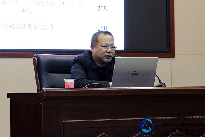 马龙副经理介绍了寒旱区水生态的恶化情况,以此指明水利工程学科的学科方向,从学科平台、学科成果、公司产品等方面,着重讲解了水利工程学科的二级学科水文与水资源工程专业,并指明了学科前景。