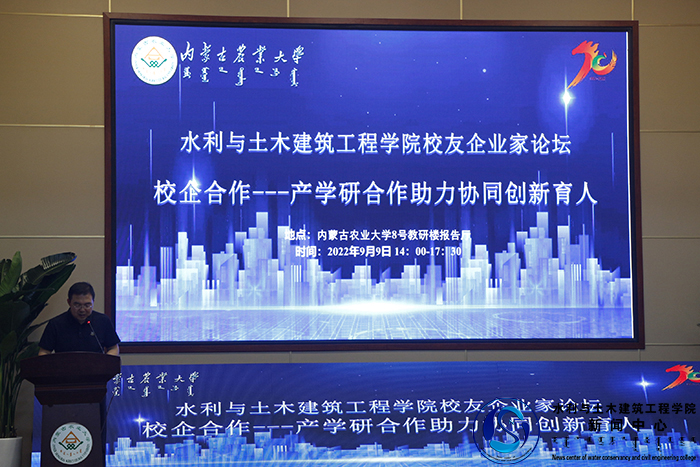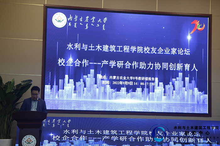 内蒙古东源投资集团有限公司--倪雨来、大禹节水集团股份有限公司大禹农水集团内蒙公司--冉国维、广州南方测绘科技股份有限公司--王贺祥、华维农装智谷(内蒙古)有限公司--王旭江、呼和浩特市丰泽水利勘测设计有限公司--任春涛、亿特利工程技术集团有限公司--韩牧仁等六位杰出员工企业家就所在企业做了精彩的企业主题报告。