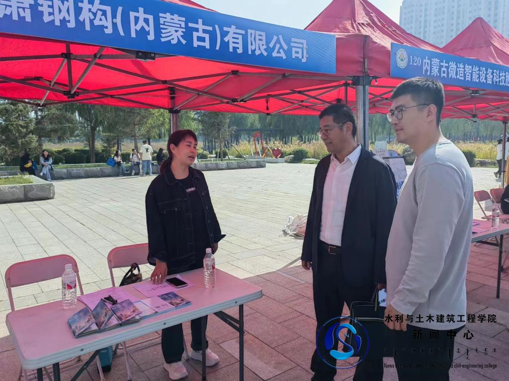 为在毕业生与用人单位之间架起桥梁,推进“万企进校园”“十万老员工留蒙工程”,2023年9月26日上午,太阳成集团官方网站主办的“金秋启航,职引未来”——2024届毕业生秋季双选会暨校企合作洽谈活动在新校区生科楼前广场举行,公司领导班子、辅导员、毕业班班主任带队参加本次双选会。