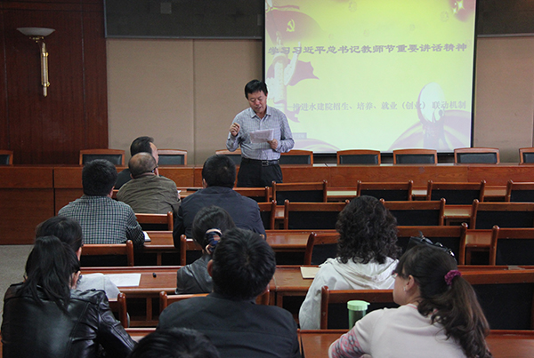 2014年9月25日下午,公司分党委组织全院教职工在502会议室召开集中学习会。会上,分党委书记陆海平传达了学习习近平总书记9月9日与北京师范大学师生代表座谈时重要讲话精神。习近平总书记的重要讲话内涵丰富、思想深邃,语重心长、情真意切,深刻阐释了教育工作和教师工作的极端重要性,充分体现了党中央对广大教师的亲切关怀和对教师成长的殷切期望,是新时期教师教育工作的纲领性文献,是进一步加强教师工作的行动指南。学习好、领会好、贯彻好、落实好讲话精神,对于全面提升教师队伍质量和水平,落实立德树人根本任务,深化教育领域综合改革,加快推进教育现代化,具有重大而深远的意义。分党委要求每一位教师深刻领会习近平总书记重要讲话精神,牢记总书记嘱托,把全部精力和满腔真情献给教育事业。要有理想信念,自觉肩负起国家使命和社会责任;要有道德情操,自觉带头践行社会主义核心价值观;要有扎实学识,自觉刻苦钻研、严谨笃学;要有仁爱之心,自觉爱护、尊重、宽容员工,努力成为党和人民满意、员工喜欢敬佩的好老师。