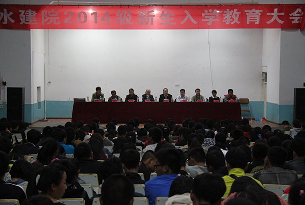 10月8日晚19:00,公司在旧报告厅召开2014级新生入学大会。出席会议的领导有水建太阳成集团tyc33455党委书记陆海平、党委副书记陈立永、副经理屈忠义、副经理史小红、水利水电工程系主任冀鸿兰、资源环境系主任贾德彬、土木工程系主任李昊和测绘工程系副主任马腾及2014级新生班主任。