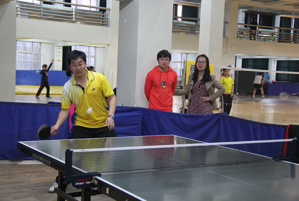 比赛分2个阶段,第一阶段:员工组在4月3日——10日中午进行,羽毛球比赛68人报名参赛,决出15名优胜者参加“师生互动”比赛,乒乓球比赛41人报名参赛,决出8名优胜者参加“师生互动”比赛。第二阶段:“师生互动”比赛在4月11日举行,15名教师报名羽毛球比赛,8名教师报名羽毛球比赛。教师以种子选手身份参赛,配以等额员工,随机抽签成为“师生组合”进行羽毛球、乒乓球双打比赛。