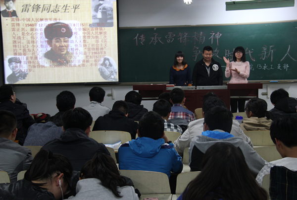 3月20日下午7:00,公司13级农水专业在西区新教315开展以“承雷锋精神,争做时代新人”为主题的团日活动,参加本次活动的是公司13级农水专业全体员工和部分员工分团委员工干部。