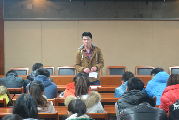 会议一开始,员工分团委书记马晓凯讲话,首先他要求各部门尽快上交上学期活动情况的总结报告,以便校级院级领导的检查,督促我们工作更好的进行;然后,马晓凯指出大家在值班过程中的问题,他希望下学期各部门部长及干事可以认真对待值班这份工作,尽职尽责,辅助老师工作的进行,为我公司的教师贡献员工团委的力量;最后,马晓凯提到了不容忽视的学习问题,临近期末,他督促大家好好复习,在复习的同时掌握考试题目的技巧。下学期将会检查大家的德育成绩及学习成绩等并将德育成绩作为考核员工的工作之一。员工分团委副书记刘杰进一步强调了各部员在下学期要继续树立良好的纪律作风,他还鼓励大家学习好office等工作软件,为将来工作提前做好充分准备。记者团团长袁博文指出,一年的工作结束了,不知不觉大家沉淀了许多,学会了不少知识。在寒假期间,希望大家继续做些有意义的事情。本次会议圆满结束。