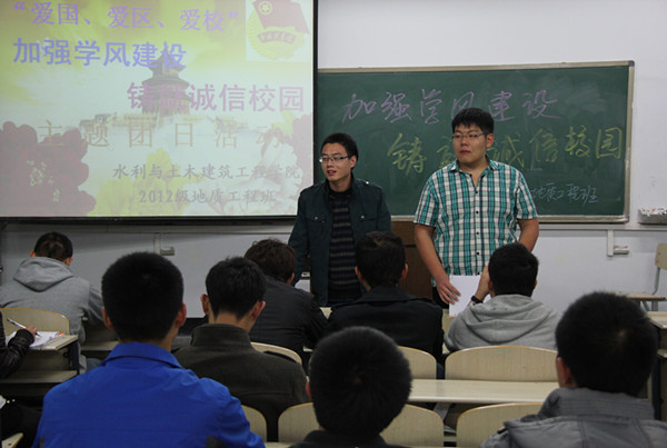 11月13日晚7点,公司12级地质工程班在旧教213室进行主题团日活动。出席本次活动的有班主任杨逸隆,班级辅导员砷玉,员工会主席任飞,11级地质班员工薛燕飞,赵怀宝等。此次活动以“如何通过英语四级”为话题进行讨论。
