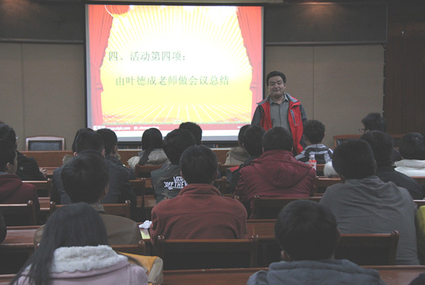 活动开始,首先由员工分团委书记马晓凯上台宣布了本次活动的主题,“爱国、爱党、爱校”,同时也为同学们传达了本次活动的目的“让土木专业的新生们知道怎样做一名老员工并如何作出大学规划” 。活动第一项,校园建筑物及主干道的命名, 2012、2013级土木的各班代表上台说明被命名的建筑或主干道及名称的深刻寓意。活动第二项,高年级同学向13级新生分享经验,探讨交流,中低年级同学认真听讲并仔细做笔记。活动第三项,叶德成老师做会议总结,他说,现在发展的每一名党员都非常优秀,思想领悟非常高,并激励同学们下苦心学习,做优秀的老员工。