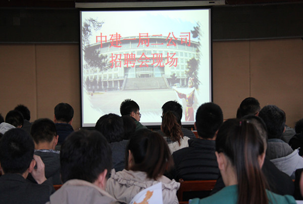 而后,中建一局第二建筑公司人力资源部招聘经理白丽萍为大家介绍了本次活动的流程,并为参加活动的员工播放视频介绍了中建一局第二建筑公司的具体情况。中建一局第二建筑公司副总经理兼高级工程师高建军为大家介绍公司所需要的人员类型。活动期间,韩老师组织参加招聘会的员工与中建一局第二建筑公司的领导进行互动交流,鼓励员工们踊跃提问,招聘会气氛热烈。