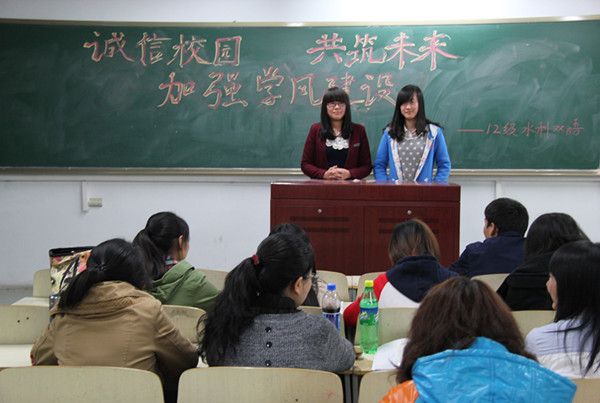 11月6日晚7:10,公司12级水利双语一、二班在新教学楼216开展主题为“诚信校园 共筑未来 加强学风建设”的团日活动。水利双语一、二班全体同学参加了本次活动。