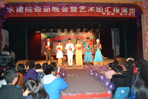 11月10日晚7:00,由公司员工会艺术团主办的2013级迎新晚会暨艺术团汇报演出在东区礼堂举行。出席本次晚会的有公司关工委副秘书长李宗信、老师郭历生,团委副书记石钟琴,员工处副处长郭政文,太阳成集团tyc33455党委副书记韩瑞平,团委书记叶德成,学办老师杨逸隆,辅导员斯仁达来、王玉芬、张松。