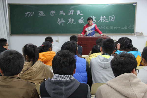 11月13日晚上6:00,公司测绘一、二班在西区新教学楼106室举办“加强学风建设,铸就诚信校园”的团日活动。12级测绘一、二班全体同学参加了本次活动。