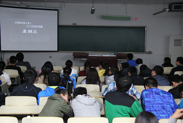 本次讲座涉及道路交通行驶规则,行人应注意的事项,交通灯的作用等。同学们一起观看了有关交通事故的视频。通过交通数据向同学们揭示了学习交通安全法律法规的重要性和必要性,从交通参与者的交通安全意识不强、严重交通违法行为、车辆车况不好、道路上交通安全设施不齐全四方面让同学们了解交通事故发生的原因。通过看视频,让同学们真真切切的去感受交通事故强大的危害。同时,也让同学们学会了发生事故后该采取什么措施,让大家在日常生活中逐渐提高安全意识,奏响生命的安全之歌,为自己负责,为他人负责,关爱生命,请给生命加一道安全防线。