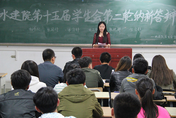 10月14日晚7:00,公司员工会在西区新教学楼409和411教室举办第十五届员工会纳新第二轮答辩。出席本次活动的有公司员工会主席任飞,员工会常务副主席兼宿舍管理委员会主任于磊,员工会秘书长张皓宇,员工会副主席兼艺术团团长崔振宇,员工会副主席兼学习部部长张良,以及员工会各部部长、副部长,所有进入二轮答辩的13级新生参加了此次活动。