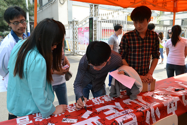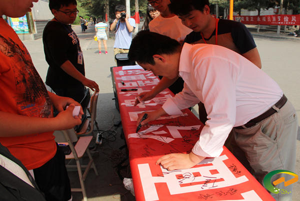 活动开始,主持人宣读倡议书,调动同学们的积极性,希望大家在写有“昨日盘满是脸面,今日盘光是典范”的条幅上踊跃签名,来响应“光盘行动”。同时简单介绍了“光盘行动”:吃光自己盘中的食物,拒绝浪费,珍惜粮食。并希望大家杜绝“消费是自由,浪费是权利”的错误观念,共同喊出“光盘能量正,永续节俭风”的口号。活动中,公司团委书记叶德成、公司专职辅导员王玉芬、斯仁达来也来到活动现场签名,鼓励同学们积极参与此次行动。活动最后,所有参与人员合影留念,此次活动圆满成功。