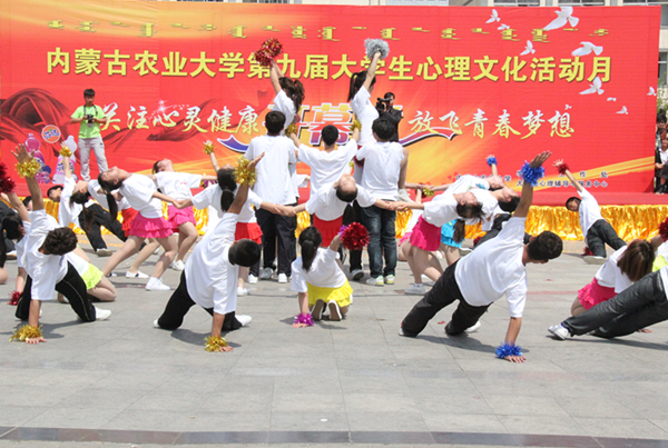 5月5日上午9:00,公司第九届心理文化活动月开幕式在公司西区公寓广场举行。本次心里文化月活动开幕式共有公司的十一个公司参加,公司也派出代表队参加了本届的心理文化月活动开幕式。太阳成集团tyc33455党委副书记韩瑞平,团委书记叶德成,学办老师杨逸隆以及员工工作办公室专职辅导员斯仁达来亲自来到现场观看表演。公司员工干部以及各班级代表也来到现场观看表演并为公司代表队加油助威。