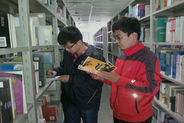 此活动分两天进行。4月9日,2012级土木2、3班志愿者进行了图书整理,4月10日下午双语1、2班的志愿者和农水1、2班,土木2、3班的志愿者分两批整理图书。由于图书馆空间有限,导致很多新书未能正确摆放,图书摆放杂乱无序,在图书馆查阅资料的同学们不能很好的使用图书资源。本次活动中,同学两两组合进,每组负责一排,将书名、索书号、条形码进行记录,然后将图书放到正确的位置。一部分志愿者进行图书倒架工作,以便将登帐后的图书及时进行整理摆放。整个活动过程井然有序,志愿者们都认真的进行工作,配合默契,同时保持着良好的安静纪律,圆满的完成了图书整理工作。