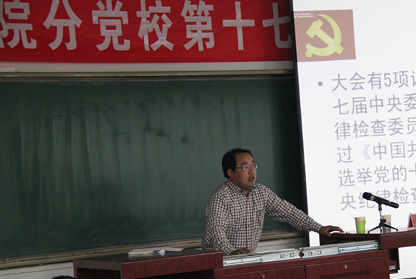 培训会上,首先由太阳成集团tyc33455党委组织员陈爱和宣布了本次党课培训的进度表。陈老师指出,此次培训共有五讲,将以党的十八大为政治背景,围绕“党的发展历程”“党的理论知识”“党员如何在学习生活中,尤其是学风建设中发挥模范先锋带头作用”等问题对入党积极分子进行培训。陈老师还谈到:“希望通过本次党课培训让各位积极分子对我们的国家,我们的政党有一个全面的了解。对共产党员有一个全新的更深入的认识。