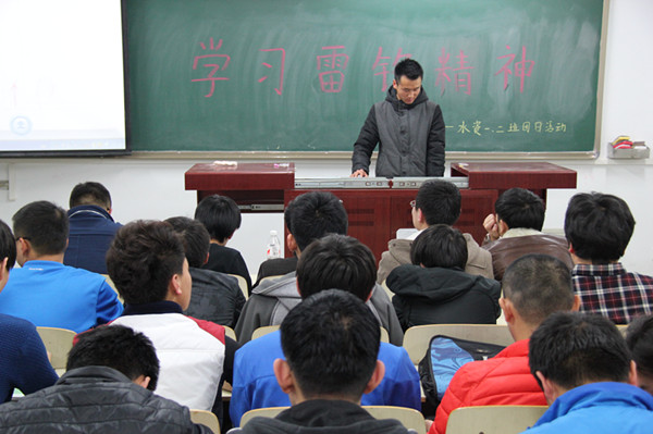 首先,水资1班的同学用一段开场白介绍了本次团日活动的主题,即“学习雷锋精神”。作为当代的老员工,树立正确的人生观和价值观对于同学们今后的发展有着至关重要的作用。接着水资2班的班长给同学们播放了一部以雷锋精神为主题的影片:《离开雷锋的日子》。影片中乔安山与雷锋是好战友,雷锋是乔安山的好班长,雷锋在生活中一直用行动潜移默化的影响着乔安山。雷锋意外去世后,乔安山一直用行动践行着雷锋精神:生活中,帮助他人,不求回报;工作中,勤勤恳恳,干好上级分配给他的每一项工作。对于雷锋精神,他从来都没有怀疑过,他相信只有雷锋精神才是作为一个人最需要具备的精神。活动过程中同学们都认真观看影片,自觉保持安静。
