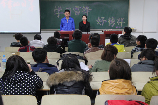 3月11日下午7:00,公司12级双语1、2班在新教学楼407教室,开展了以“学习雷锋好榜样”为主题的团日活动。参加此次活动的有:分团委组织部干事赵鑫、叶杨。双语1、2班全体同学参加了此次活动。
