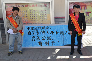 本次活动旨在引导同学们主动刷卡,自觉遵守宿舍管理规定。号召同学们一起努力,树立优良的校风。每人文明一小步,校园文明一大步。