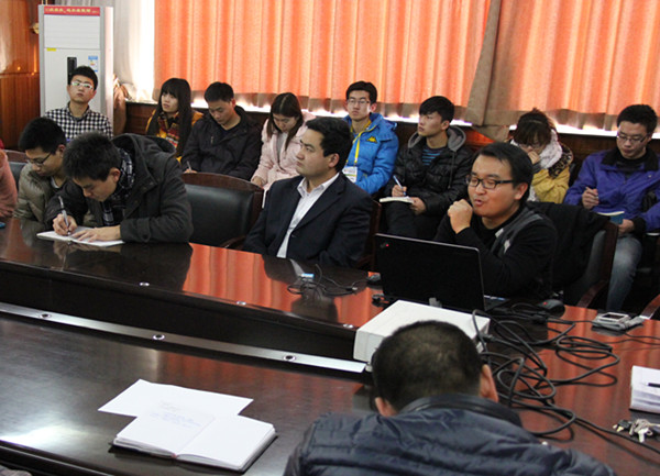 首先由韩书记致辞并欢迎程锐老师的远道而来,同时介绍了程锐老师曾获得全国辅导员职业技能大赛冠军。讲座开始,程老师首先谈到了两校的共同点及都是农科类院校和属于少数民族地区院校,接下来就如何在繁重的课程下开展好员工工作问题进行了解答。程老师还向在场的老师和同学讲述了他们公司的口号及特色工作,其中比较突出的就是他们利用新的通讯工具加强了和员工之间的沟通,这便是他们口号之一“信息学工”的实施。为了加强同学们的实践能力,他们还和一些企业或个人签订合同,让同学们进行有偿服务。程老师还提到在员工党建工作这一方面的建设应作为一项重要工作,而重中之重便是学风建设。此外,程老师还提供了他们在员工工作各个方面的一些处理方法。最后,在场的老师同学和程老师就讲座内容进行了交流讨论,分别提出了自己的观点和看法。