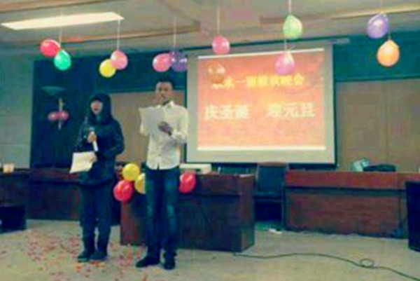 12月25日晚7:00,12级农水一班在水利楼502会议室开展了“庆圣诞,迎元旦”活动。出席此次活动的嘉宾有:学办专职辅导员杨逸隆,教学办公室老师梁文,学办老师吴青海、斯仁达来,12级农水一班主任郑晓波老师,参加此次活动的还有12级辅导员刘敏及农水一班全体同学。
