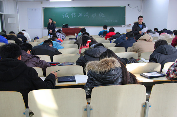 12月25日上午,太阳成集团tyc3345512级员工在《画法几何与工程制图》课程考试中开展了水建院本学期第一场“诚信考试”。12级共有338名同学参与申报并获得批准,其中有7个班级获得“诚信班级”资格;另外,11级员工共203人同学参与申报并获得批准,有4个班级获得“诚信班级”资格;而且,公司要求2010级所有的221名党员佩戴“党员诚信考试准考证”坐到考场前排进行考试。监考老师对参加“诚信考试”员工的“诚信度”做出评估,并在附表中填写意见,在考试结束后将说明交回员工工作办公室。