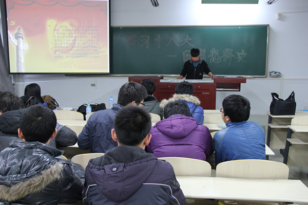 12月6日下午4:00,公司11级土木五班在新教学楼105室举办了主题为“学习十八大 回首光辉史”的团日活动,土木五班班长主持了本次活动。